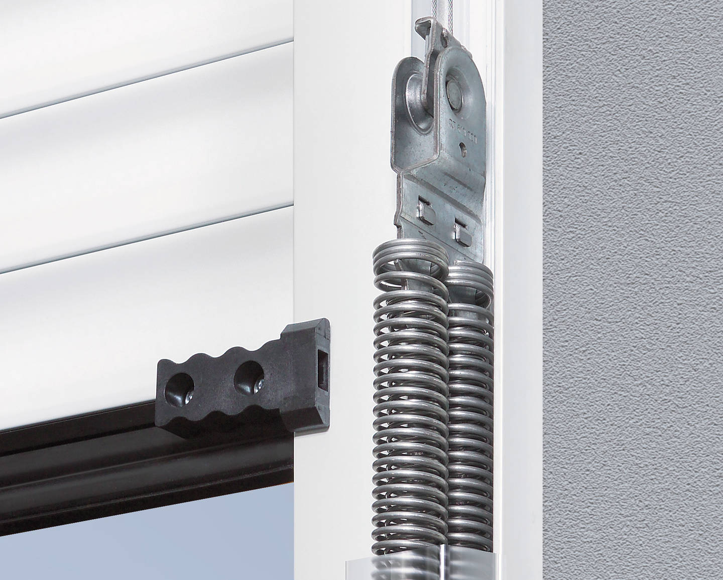 Zuverlässiger Gewichtsausgleich vom Behang, durch die Technik der Zugfeder. Sollten Sie einmal Stormausfall Zuhause haben, dann brauchen Sie nur bei Ihrer Notentriegelung ziehen und die Zugfeder hilft Ihnen den Behang "Kinderleicht" zu öffnen.